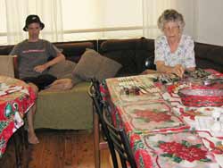 | Shane supervises the sorting of the cutlery. |